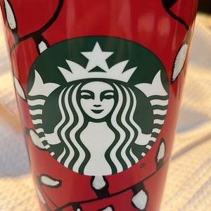 Starbucks 2016 holiday ceramic travel mug mermaid logo red festive light bulbs