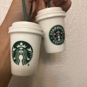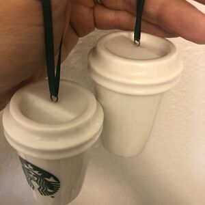 Bundle Set of 2 Starbucks 2016 White Green Logo Siren Cup Holiday Christmas Ornament