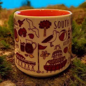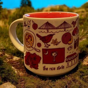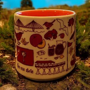 This ceramic mug captures iconic South Carolina landmarks and symbols in Starbucks’ signature artistic style.