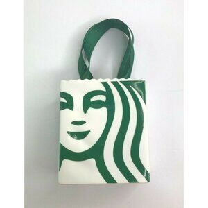 Starbucks 2019 Mermaid Logo Gift Bag Ceramic Holiday Christmas Ornament.Ceramic bag with the mermaid logo with green handles. It can stand on any shelf table as a centerpiece if wanted.