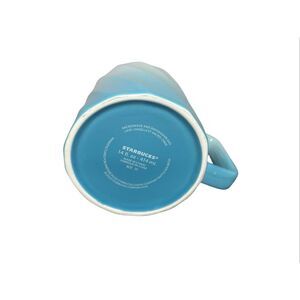 Ombré wave ceramic tea and coffee mug, rectangular handle,raised pattern and signature logo