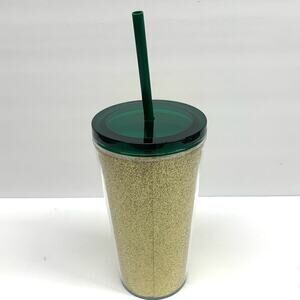 Starbucks 2021 16 oz. Tumbler Sparkling Gold With Green Lid & Straw Mermaid Logo