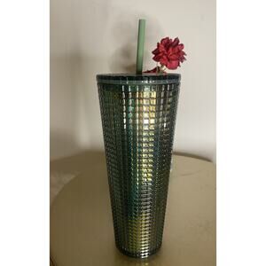 Starbucks 2022 Fall Green Aqua Grid Rainforest Venti Cold Cup Tumbler 24oz - New.