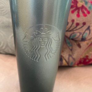 Starbucks 2022 Green Ombre Metal cup with lid and straw. NWT in a mint/sage green that fades to a darker green and has a sparkle cast to it. 16oz.