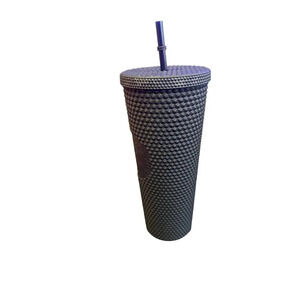 This 24oz matte black studded tumbler from Starbucks stands out with its sleek design. Ideal for cold beverages, it includes a reusable straw.