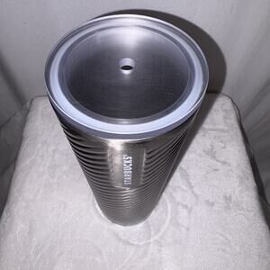 This Starbucks tumbler is a must-have for any coffee or tea lover. Its sleek silver color and ribbon swirl design make it a stylish addition to any collection. The tumbler is made of high-quality stainless steel and can hold up to 24oz of liquid, perfect for your favorite cold beverage.