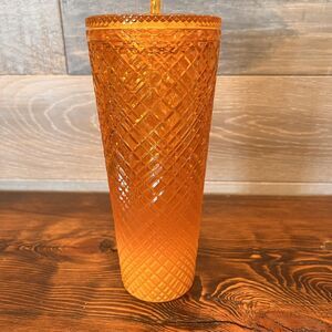 New Starbucks 2022 Summer Cold Cup Venti 24oz Yellow Mango Ombre Jeweled Tumbler