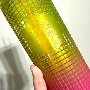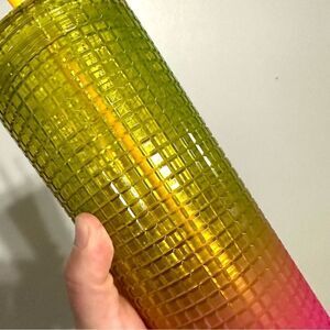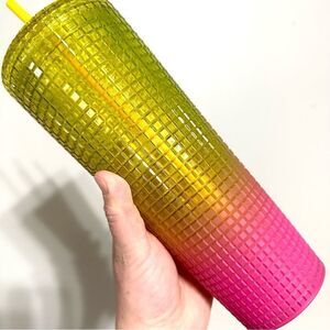 Starbucks 2022 Two Toned Grid patterned Tumbler Cup Yellow and Pink