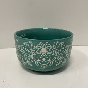 Starbucks 2022 Woodland Etched Ceramic Coffee Soup Mug Ice Cream 16oz Teal