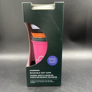 The Starbucks 2023 Halloween Cups Set of 6 Glow-in-the-Dark Reusable Hot 16 OZ is a limited edition collectible set featuring a multi-color design that glows in the dark. These original Starbucks cups are perfect for coffee and tea enthusiasts, with a fun and festive Halloween theme. Made for the 2023 season, this set is a unique addition to any Starbucks memorabilia collection.