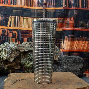 Starbucks 2023 Holiday Metallic Mirror Silver Grid Disco Venti 24oz New