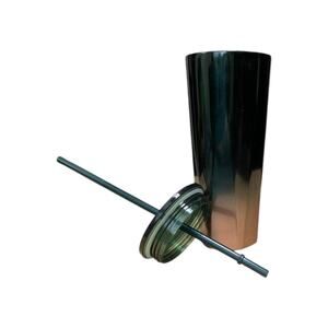 Starbucks 2023 Holiday Tumbler Stainless Steel Cup Straw Green Rose Gold Ombre