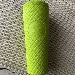 FEATURES: Latin America Starbucks Limited Edition Venti Tumbler Cup. Neon green with turquoise straw.