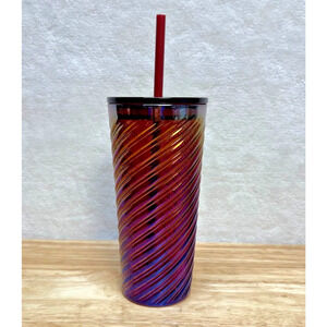 Starbucks 2023 Red Opalescent Twist Glass 18 oz. Travel Tumbler With Lid & Straw