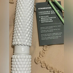 🤍Starbucks White Studded Bling Straw Case with 2 multicolor swirl venti reusable straws and brush cleaner with green strap | BRAND NEW | 2024 Summer- Chapter 1 Collection🤍