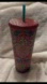 Dazzling cold cup with intricate floral design. Includes matching straw.