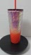 Vibrant Starbucks tumbler featuring a gradient design. Comes with a matching orange straw.