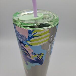 Starbucks 24 oz Cold Tumbler Artsy Printed Stainless Double Wall Sip or Straw Lid Multi-Color Colorful SPRING Design Painted look Print. Review all photos to judge pre-owned condition - Few uses, light scratches and normal open stock wear. Smoke free.