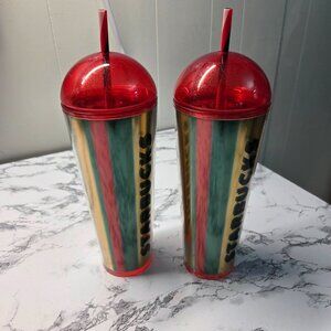 Starbucks 24 oz Limited Edition 2024 Metallic Red Gold Dome Tumblers Set of 2