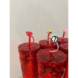 Starbucks 24oz Tumbler Red Diamond Prism Crystal, W/ Valentines Day Straw Topper