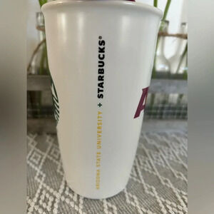 Starbucks Arizona State University Ceramic Coffee Mug with plastic lid. 12 fl oz. Great for parents, grandparents or students. Great travel mug for cold or hot coffee or tea.