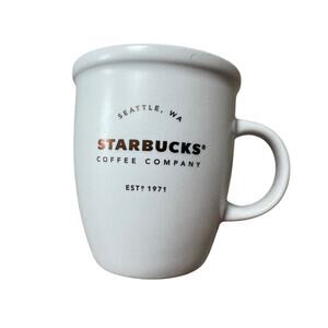 Starbucks Abbey 12 OZ Coffee Mug, 2016; White Mug with Gold Iridescent logo