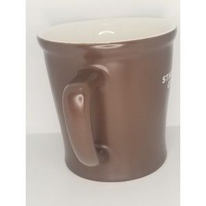 Starbucks Abbey Large Brown Coffee Mugs w/ White 16oz 2008 Set of 2. Preowned. Both show some surface wear marks on exterior and bottom as pictured.