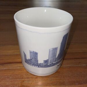 Starbucks Architecture Series Miami, Florida "Magic City" 2007, 18 ounce coffee mug. The white ceramic mug features a blue illustration of the Miami skyline and the text MIAMI MAGIC CITY. Dishwasher and microwave save. In great pre-owned condition.