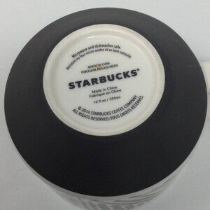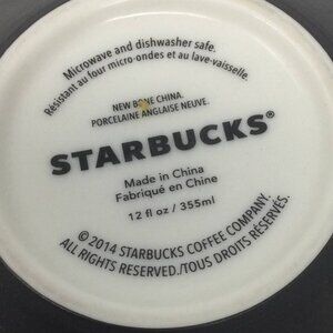 White with dark brown/black design. Starbucks name imprinted on the handle. Stackable with others from the series. Good used condition.