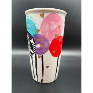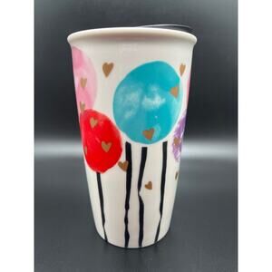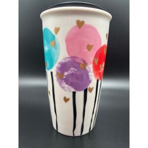 Starbucks Balloons Hearts Ceramic Travel Mug Coffee Cup With Lid Party