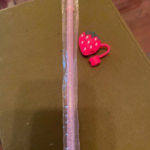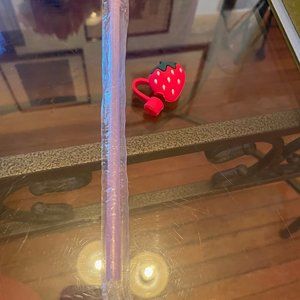New! Starbucks Barbie Pink Straw and Strawberry Topper Set