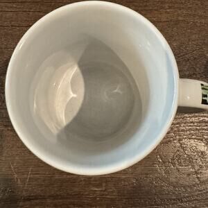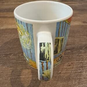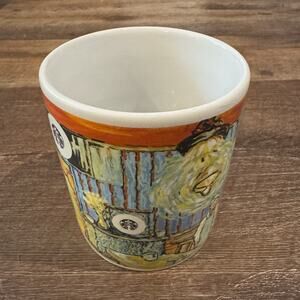 This mug has markings on the bottom interior from what looks like someone stirring with a spoon. It was hard to capture the detail in a photograph, but you can see a little discoloration there. Otherwise this mug is in good preowned condition. It's a 2001 collectable mug from the Van Gogh series. I think it might be a Chaleur collaboration.