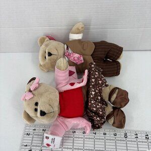 This plush set features a charming bear couple dressed in Valentine's Day themed outfits. The bears, made by Starbucks, are collectible items from 2007 and 2011.