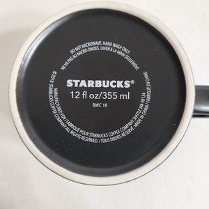 Elegant Starbucks mug. Black top with silver bottom. Perfect for coffee lovers.