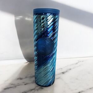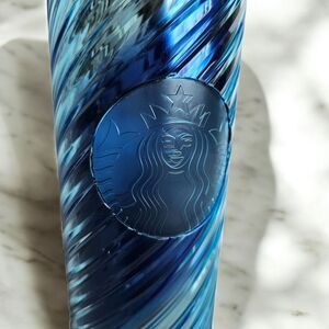 Experience your favorite beverages in style with this Starbucks tumbler, featuring a vibrant blue hue and a captivating iridescent swirl design. The textured, embossed pattern adds a modern touch, making it a perfect addition to any dining collection. Its sleek, contemporary look ensures it stands out while maintaining an elegant appeal.