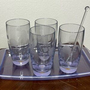 Starbucks Bubble Glass Pitcher Drink Set 4 Glasses Stirrer Tray Rare Collectible