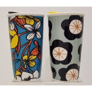 Starbucks Ceramic Tumblers 2019 Teal Poppy Flowers & Spring Black Floral Set Of
