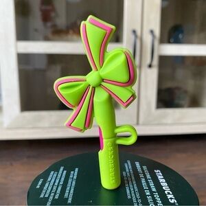 A beauty! Add this gorgeous tumbler to your collection. The tumbler is lined with deep green velvet and had pops of red and lime green ornaments added to the outer plastic. A bow straw topper matches the color of the ornaments!