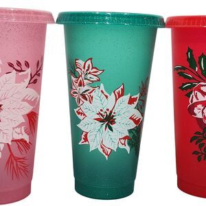 Starbucks Christmas Glitter Cold Cups 24oz Set of 5 Resuable NO STRAWS