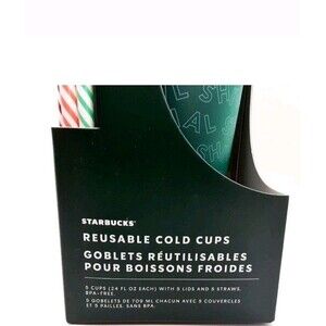 Starbucks Christmas Holiday Cold Cups 5-pack 24 oz. + Lids + Straws NEW