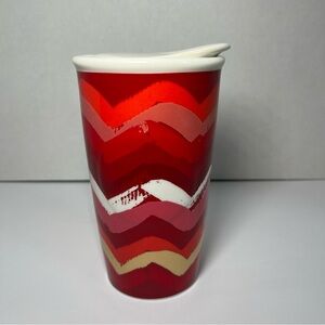 Starbucks Coffee Ceramic Travel Tumbler Mug Red Chevron Pattern 10 fl oz 2014