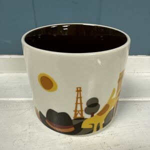 Enjoy your morning coffee in this 14oz Starbucks mug from Houston, Texas. The mug features a unique brown and yellow color pattern, and is part of the 2012 You are Here Collection. The Starbucks brand is well-known for its high quality coffee and tea products, and this mug is a perfect addition to any collection. The item is an original, and was manufactured in China. Get yours today and add a touch of coffee and tea culture to your kitchen!