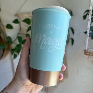 Starbucks “Coffee Is Magic” Ceramic Travel Mug Tumbler Gold Base, Collectible