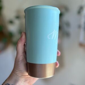 Bring some charm to your daily routine with this beautiful Starbucks “Coffee Is Magic” ceramic coffee mug! This 12 oz collectible tumbler features a soft pastel blue body, shimmering metallic gold base, and elegant white lettering. A warm reminder that your morning brew truly is magic ✨