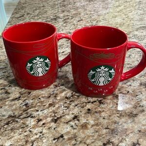 Starbucks Coffee Mug Set 12 fl oz 2020 Christmas Red FA LA LA LA LA Holiday