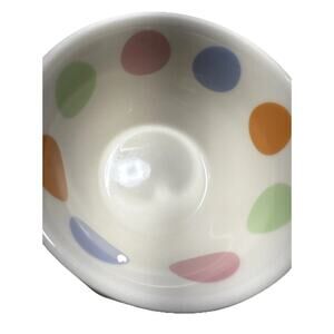 Rare and collectible Starbucks Coffee cup and saucer set from 2006. Features a glossy pink exterior with multicolor pastel polka dots (pink, blue, green, orange) on both cup and saucer. White interior with coordinating dots. Cup holds 12 fl oz. Stamped Starbucks Coffee 2006. Microwave and dishwasher safe. Excellent for collectors or daily use. NEW Unused Condition