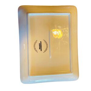 This vibrant ceramic tray features a colorful apple print and is branded by Starbucks Coffee. Ideal for serving or as a decorative piece.