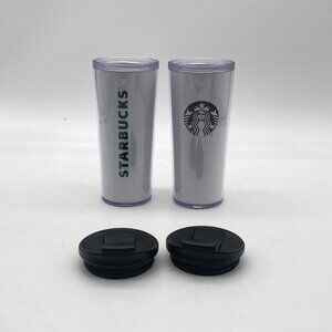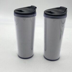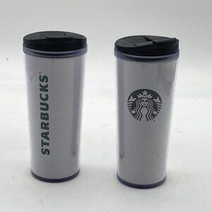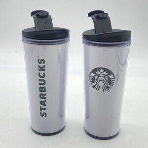 Starbucks Coffee Travel Tumbler Mug 16oz Flip Top Lot of 2 Mermaid Spellout White