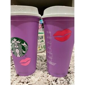 One valentines 2021 purple cup with red lips- lip change to pink color when hot