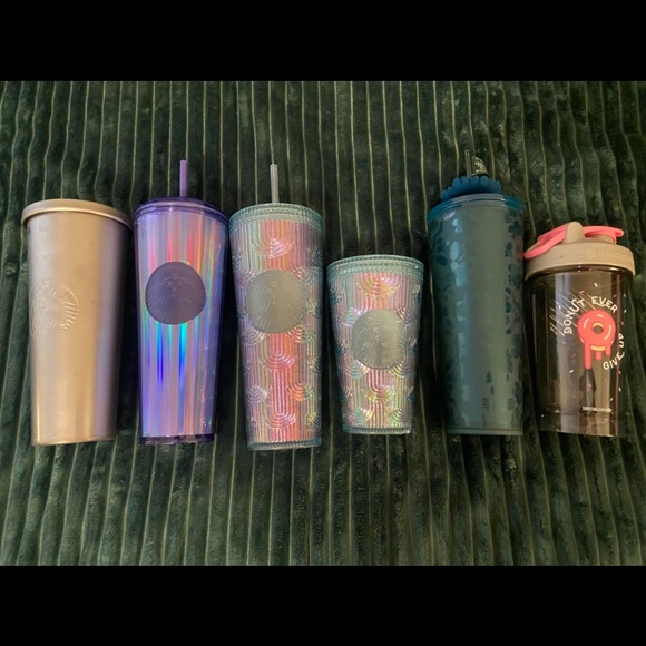 5 Starbucks cups, and one bonus protein shaker